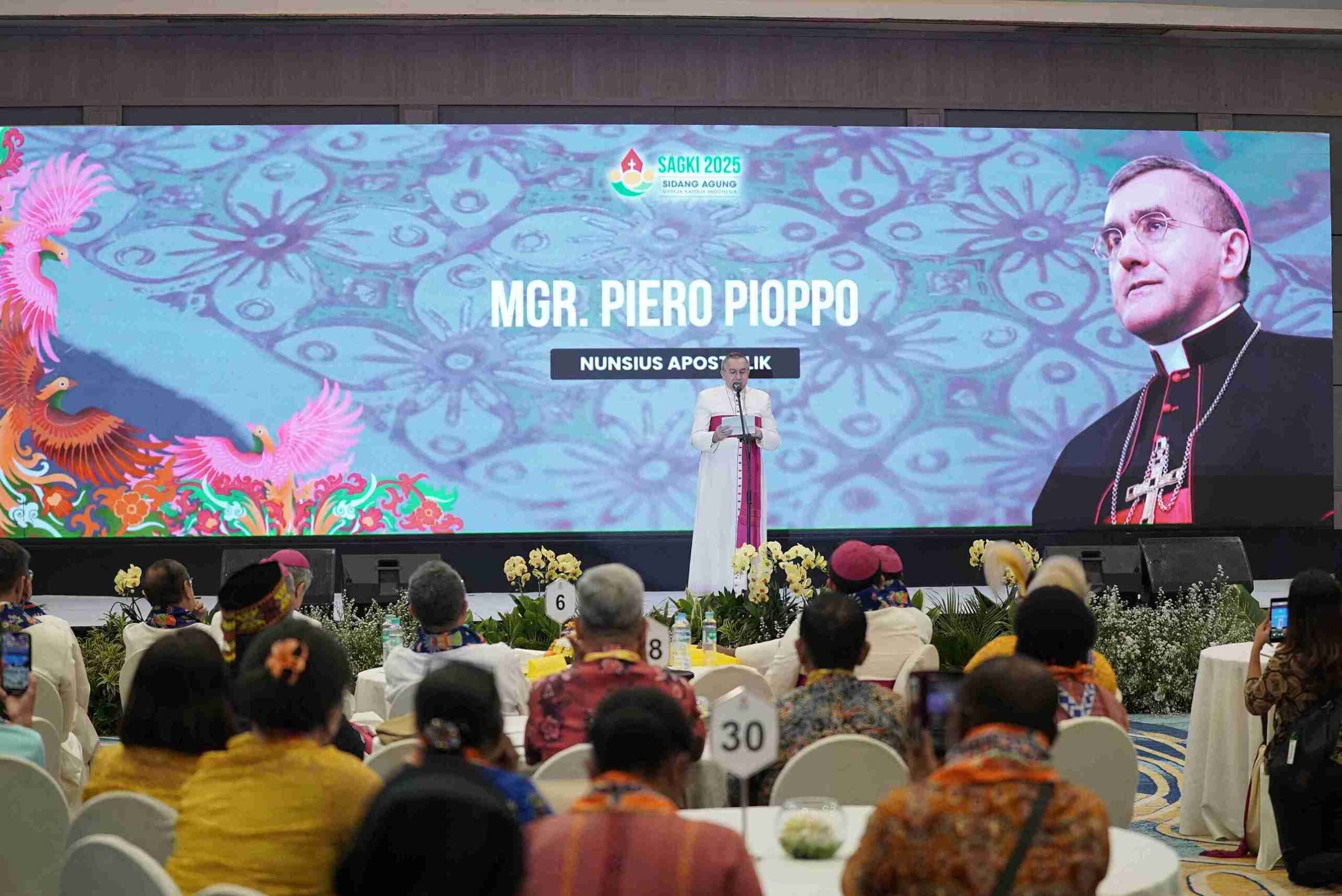 HIDUPKATOLIK.COM— Suasana ruang pertemuan itu terasa berbeda ketika Nunsius Apostolik, Mgr. Piero Pioppo yang selama delapan tahun mewakili Bapa Suci di Indonesia berdiri di depan para uskup, imam, biarawan/ti, serta perwakilan dari setiap Keuskupan di Indonesia dalam Sidang Agung Gereja Katolik Indonesia (SAGKI) 2025 di Hotel Mercure Ancol, Jakarta Utara, pada Senin, 3/11/2025. Wajahnya teduh dengan suara yang membawa bobot pengalaman, persahabatan, dan cinta yang terjalin dalam delapan tahun perjalanan pastoralnya di Indonesia sebagai Duta Besar Takhta Suci Vatikan untuk Indonesia.