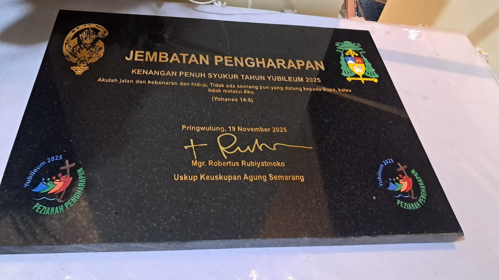 Penandatanganan prasasti peresmian Jembatan Pengharapan oleh Uskup KAS