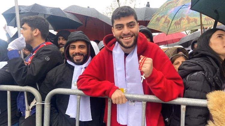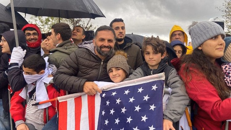 “Sekalipun hujan dan badai, kami tidak peduli. Yang kami pedulikan adalah kesempatan untuk menyambut dan berbahagia bersama Paus – inilah alasan kami di sini,” ujarnya sambil memegang bendera Amerika, karena ia adalah warga Lebanon tetapi pernah tinggal di Amerika Serikat.