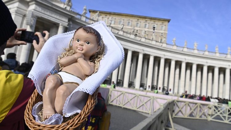 Paus menyapa semua yang hadir, termasuk lebih dari 1.500 anak dari Roma, dan khususnya dari Spanyol dan Hong Kong. Anak-anak Roma menunjukkan kepada Paus patung bayi Yesus – “bambinelli” seperti yang disebut di Italia – yang mereka bawa untuk diberkati oleh Paus. Patung-patung itu kemudian akan ditempatkan di kadang Natal di rumah, sekolah, paroki, dan kapel mereka.