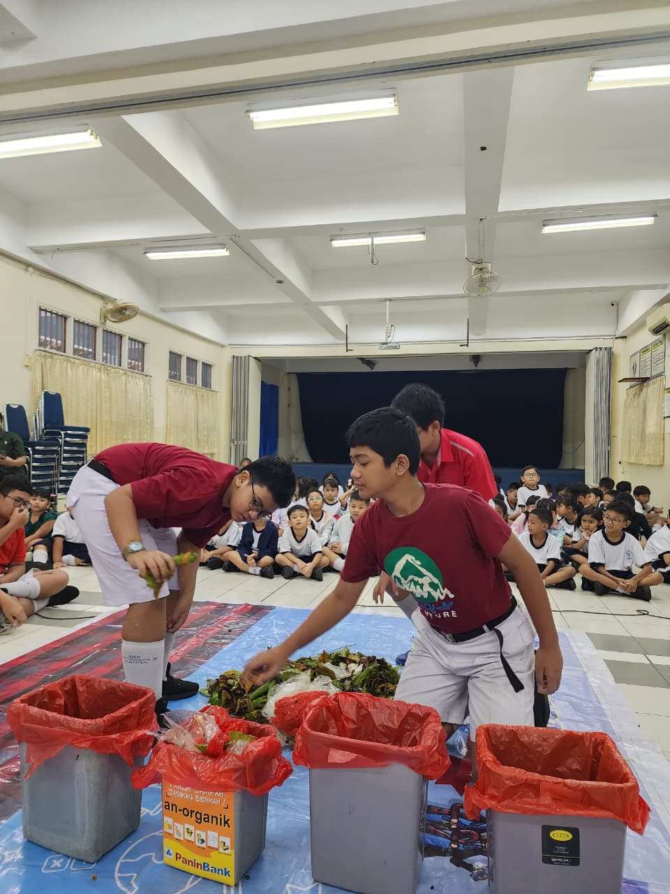 Kegiatan dilaksanakan di lingkungan sekolah, mulai dari aula SD untuk sesi edukasi, aula SMP untuk praktik pilah sampah, hingga perpustakaan yang disulap menjadi galeri pameran karya daur ulang.