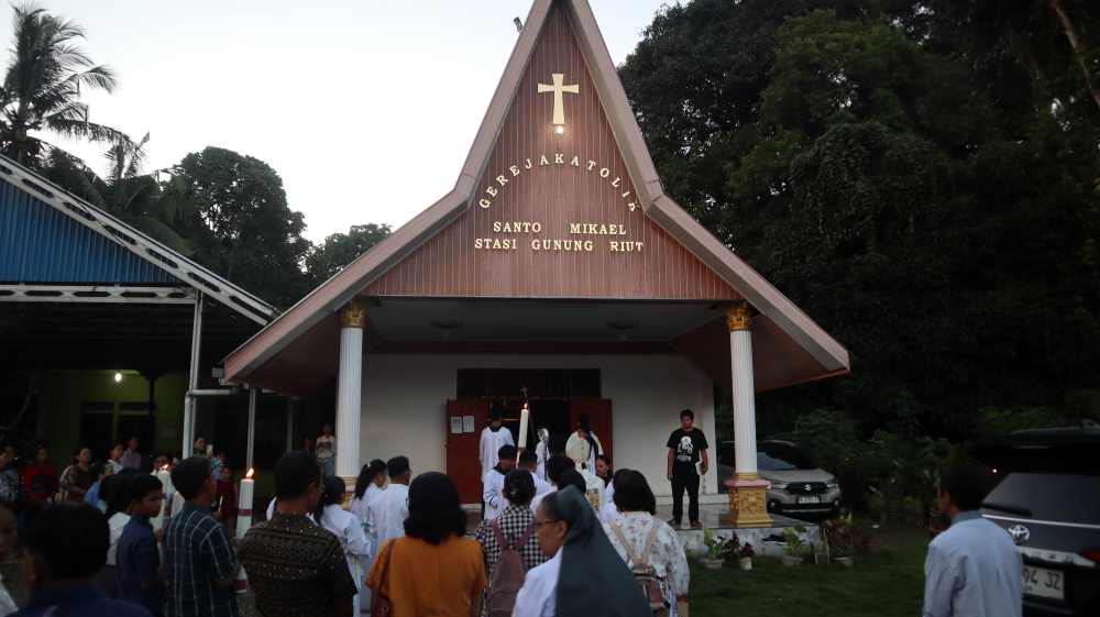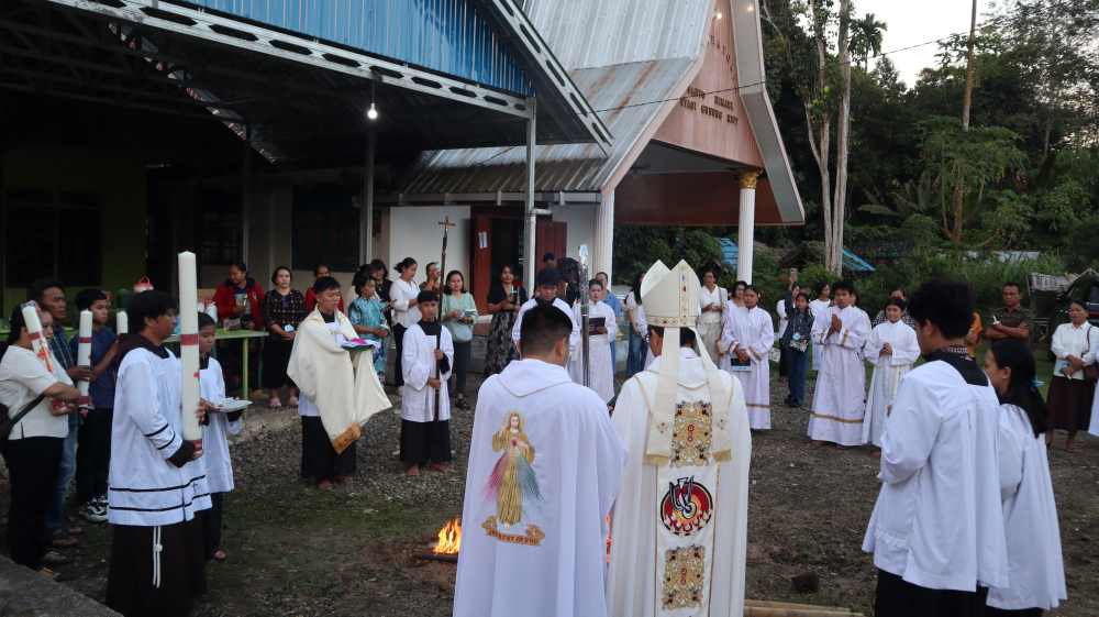 Perayaan Vigili Paskah, Sabtu, 4 April 2026, dipusatkan di Stasi Santo Mikael Gunung Riut, yang berjarak 14 kilometer dari pusat paroki. Misa dimulai tepat selepas matahari terbenam pukul 18.00 Wita, dan dipimpin Uskup Victor didampingi oleh Pastor Paroki Halong, Pastor Romanus Rusdi Fardhani, OFM Cap.
