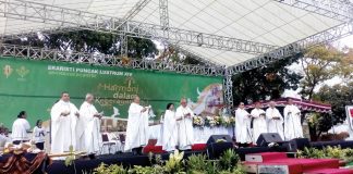 “Begitu saya tilpun, eeh… di sana tidak diangkat. Tak berapa lama, saya pergi, Romo Kardinal ganti tilpun. Saya yang malah ganti tak mengangkat. Namun saya berdoa agar Romo Kardinal bisa hadir di acara ini dan Anda bisa lihat sendiri,†ujar Ketua Komisi Kateketik KAS ini, disambut tepuk tangan ribuan katekis yang hadir.