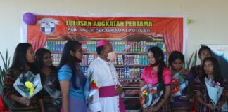 HIDUPKATOLIK.COM – DI tengah hamparan berbatuan di dusun Likotuden, Larantuka, Flores Timur, Nusa Tenggara Timur, berdiri sebuah bangunan megah bernama SMK ANCOP Likotuden. Dibangun tahun 2016 dan diresmikan tahun 2017, sekolah ini termasuk salah satu sekolah berkelas di wilayah ini. Sekolah berasrama ini dekelola atas kerja sama antara Keuskupan Larantuka dan Yayasan ANCOP (Angkat Citra Orang Papa). Yayasan ini diprakarsai oleh Couple for Christ (CFC) Indonesia. Sebuah bentuk kerja sama perberdayaan yang apik, menarik, visioner.