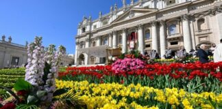 Dekorasi Bunga Belanda Memenuhi Lapangan Santo Petrus untuk Minggu Paskah