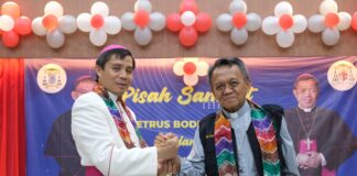 Kunjungan Perdana Uskup Terpilih Keuskupan Banjarmasin Disambut dengan Tarian Radap Rahayu